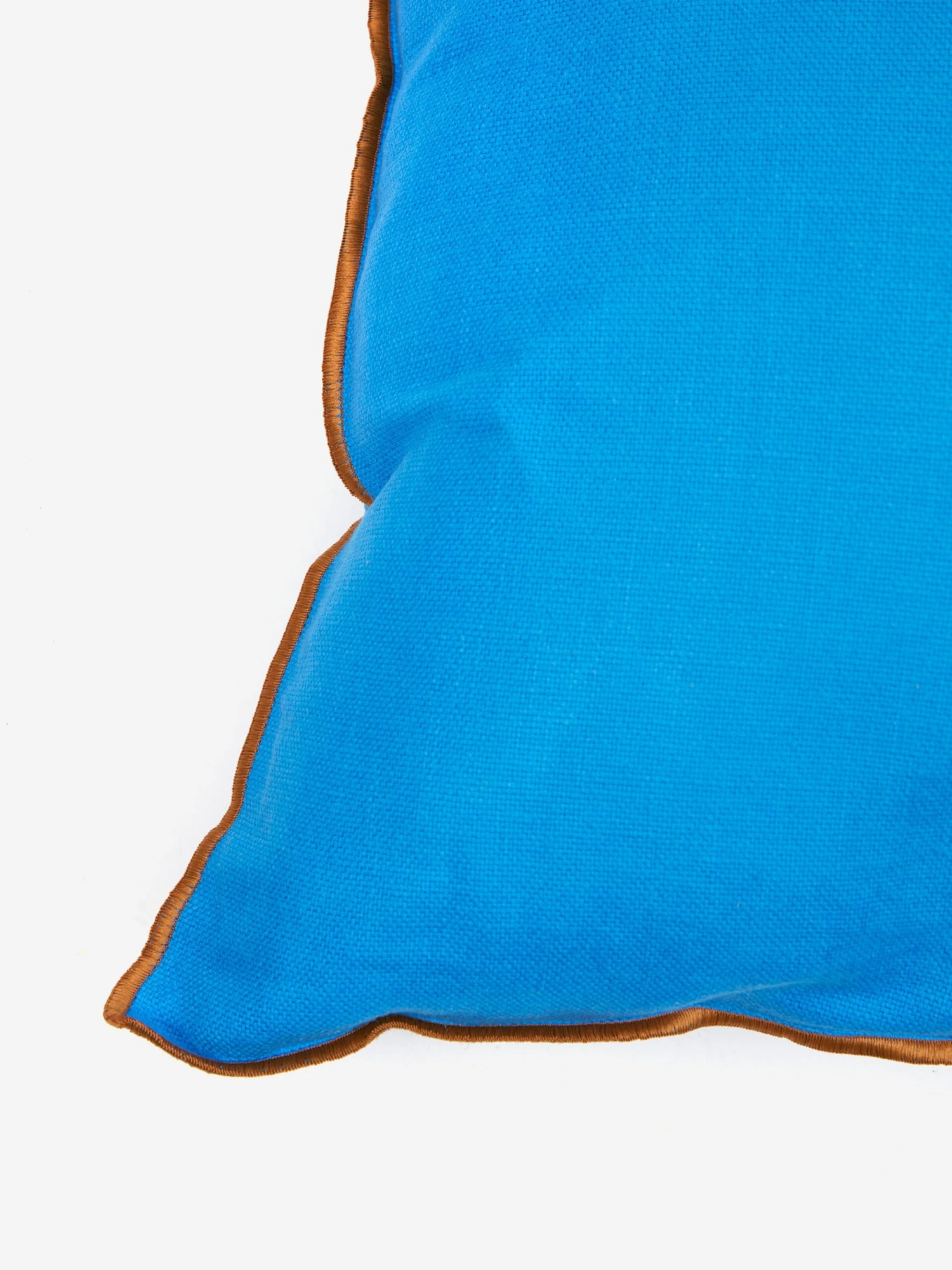 linen and cotton-blend cushion, vivid blue contrasted with a yellow piping. Match up with other
