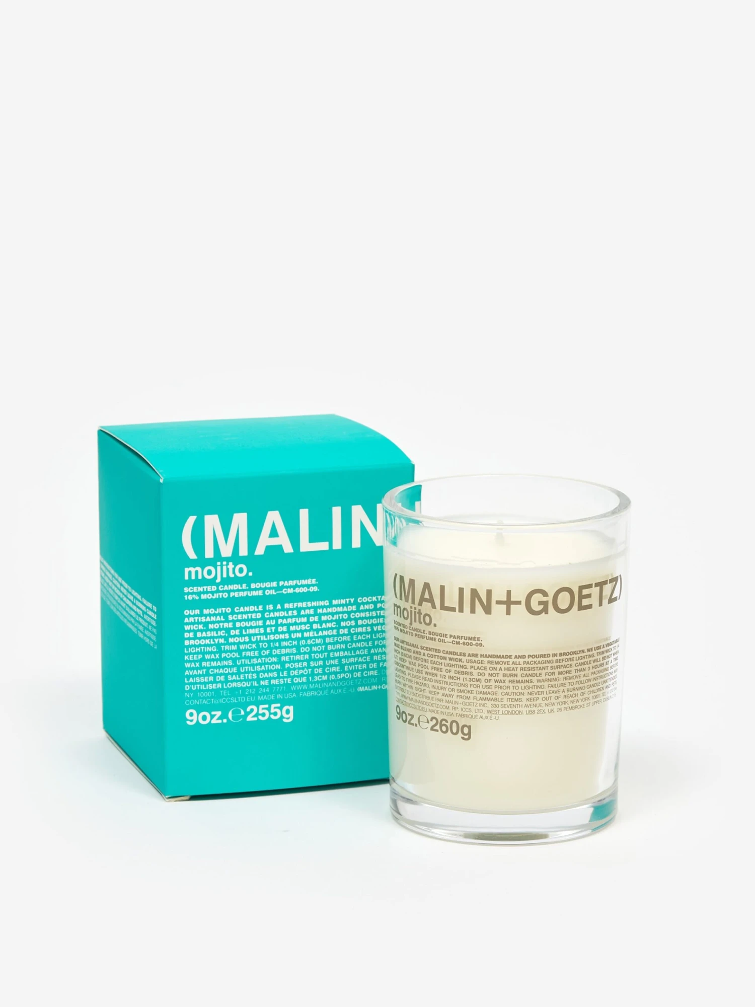 This candle is scented with notes of lime, rum, mint leaves, and peppery basil. Crafted from natural beeswax, it lasts up to 60 hours.